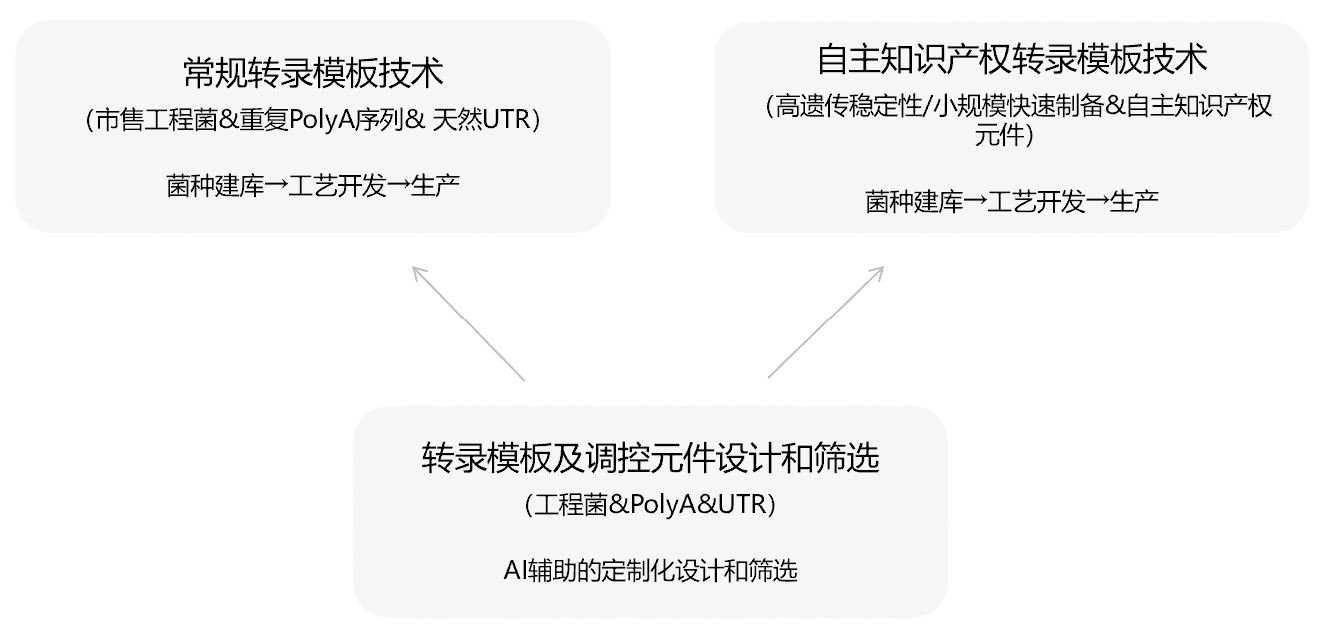 依诺生物具有成熟的转录模板设计和制造能力以及UTR、Poly(A)等元件设计筛选能力,能够根据客户需求灵活应用各类常规元件和制造技术设计、制造高质量的转录模板。在此基础上,依诺生物进一步发展了具有广泛适用性和组织/细胞特异性潜力的自主知识产权UTR库,基于自主知识产权工程菌和Poly(A)序列的高遗传稳定性的基因模板设计解决方案,以及基于自主知识产权无细胞质粒制备技术形成的小规模mRNA转录模板快速高质量制备解决方案,更好满足客户更广泛mRNA药物成药性和工艺需求。