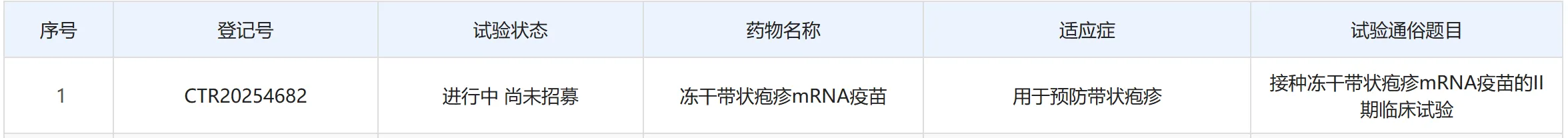 Parent company Rhegen Biotech's lyophilized mRNA vaccine for herpes zoster (RH110) has initiated Phase II clinical trials.
